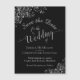 This beautiful magnetic cards will let your friends and family know to save the date for your upcoming wedding. The beautiful features a classic black background, light grey script calligraphy, and ornate silver faux foil curls and swirls in the corners. Beautiful way to let your friends and family know about your upcoming wedding.