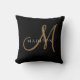 Fancy Stylish Black and Gold Monogram Script Cushion