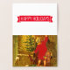 Christmas card with fancy typography design . The front and the back comes with real foil printing in silver colours . Inside the card it is full colour printing . There is a vintage image : .a little girl in red coat is holding a tree and ringing the door bell . She is barefoot . A Hungarian design from 1896 .