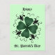 A beautiful Victorian style shamrock with swirls and Fleur de lis symbols on a post card.