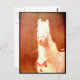 A pretty circus pony decked out in fancy attire with a soft flowing curly white mane and big brown eyes. The background is a orange brown colour with scratches and marks which give it a nice vintage feel.