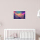 The poster is a picture with colourful colours and a dreamy atmosphere. The person standing alone in the middle makes you feel overwhelmed by the atmosphere in the picture. You can feel as if you are overwhelmed by the fantastic scenery by becoming the person in the picture.