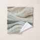 A hand-drawn illustration of calm waves with white, beige, and light mint hues. The metallic colours are clean and have visible brush strokes in the background. The visible texture and lines are slightly wavy.