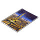 Notebook in a semi-abstract ariel view of Paris, brightly lit, under a dark blue starry sky