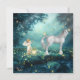 Beautiful little Angel Feeding A Unicorn in a mystical forest art Flat Card.