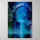 A lovely light shines on a fantasy stone arch, surrounding bushes, tall stands and an urn as the eerie, star-filled blue fog swirls. This photo is available in an astounding number of sizes and shapes.