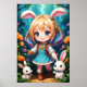 Fantasy Beautiful Cute Girl Rabbit Poster
