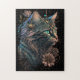 Fantasy blue eye cat with flowers AI art Jigsaw Puzzle