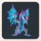 Fantasy Blue Fire Dragon Square Paper Coaster