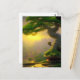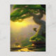 Beautiful postcard features a digital art fantasy scene with a large Bonsai tree, mystical lush landscape surrounded by a small stream.