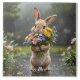 Fantasy Cute Bunny Flowers Rain Ceramic Tile