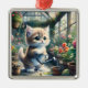 Fantasy Cute Cat Garden Flowers Metal Ornament