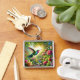 Fantasy Cute Flowers Rainbow Hummingbird Key Ring