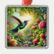 Fantasy Cute Flowers Rainbow Hummingbird Metal Ornament