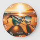 Fantasy Cute Glasses Sunset Beach Large Clock