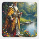 Fantasy Cute King Fishing In River Square Sticker