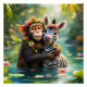 Fantasy Cute Monkey Zebra Hug Poster