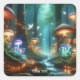 Fantasy Cute Mushrooms Forest Night Square Sticker