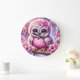 Fantasy Cute Pink Owl Sakura Large Clock
