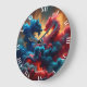 Fantasy Cute Red Blue Dragons Large Clock