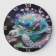 Fantasy Cute Turtle Glass Flowers Large Clock