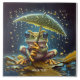 Fantasy Cute Umbrella Frog Rain Ceramic Tile