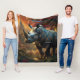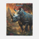 Fantasy Cute Vivid Flowers Majestic Rhino Fleece Blanket