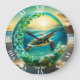 Fantasy Cute Vivid Turtle Sea Waves Large Clock
