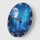 Fantasy Cute Wolf Double Exposition Large Clock