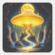Fantasy Cute Yellow Ancient Mushroom Square Sticker