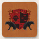 Snarling hellhounds stand guard on either side of the Dracula (fantasy) coat of arms on this coaster set. The blood-red crest of the lord of vampires is comprised of traditional patterns with bats, a skull and an upside-down cross at the centre. This design is perfect for Halloween but can also be for every day for the darker souls among us. From my original digitally-created image.