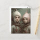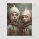 A fantasy design of two strange children with fish hats I had asked for a part fish part person and was given this by the AI generator.