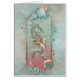 Elegant swirls of seaweed and graceful fantasy fish over a pastel peach and aqua blue watercolor effect background.