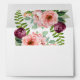 With rustic charm and boho flair, this envelope is embellished on the inside flap with bouquets of watercolor roses in pink and burgundy with leaves and ferns. It coordinates with the Floral Fantasy Wedding Collection. If you wish to include your return address on the back outside flap, edit the sample address shown in the design template. If you wish to remove this element entirely, simply delete the text shown.