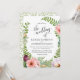 In lovely boho-style, this woodland floral fantasy wedding invitation features an open floral wreath with pink, burgundy and pale lavender roses with trailing woodland ferns and greenery. The nature-inspired look is has rustic charm and is a wonderful choice for those who enjoy the outdoors.