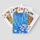 Playing Cards in a semi-abstract illustration of a fantasy forest with flowers, foliage, trees and birds, in shades of cobalt blue and white