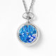 Watch in a semi-abstract illustration of a fantasy forest with flowers, foliage, trees and birds, in shades of cobalt blue and white