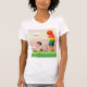 Bring a pop of fun to your wardrobe with this women’s T-shirt showcasing a bright cartoon scene of a boy running past a towering rainbow ice cream cone in a candy land inspired world. Comfortable and stylish, it’s perfect for casual days, parties, or simply expressing your love for playful and imaginative designs. The colourful illustration makes this T-shirt a standout choice for anyone who enjoys cheerful and creative artwork in their fashion.