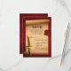 Fantasy knight's sword Jewish Bar Mitzvah rsvp card. This mediaeval times fantasy sword and sorcery Bar Mitzvah reply card features a red velvet look background, a simulated parchment scroll, a knight's, king's, or prince's sword, and a wax seal with a subtle Jewish Star of David.