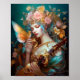 Fantasy Lady With Lute & Butterfly Bird Poster