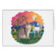 A blue Abyssinian cat is the focus in this design called Fantasy Land that includes a golden castle on a hill by a crystal blue river, a magical unicorn, a dove of peace and a shy rabbit - a land where opportunity calls and dreams are fulfilled.