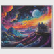 Fantasy landscape with ship and planets in space 3d illustration, Stellar Odyssey a Psychedelic Voyage through Space