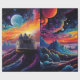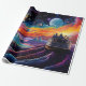 Fantasy landscape with ship and planets wrapping paper