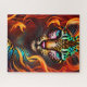 Fantasy Leopard Face, Aqua Pink Orange Jigsaw Puzzle
