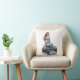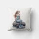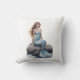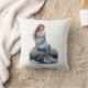 Throw pillow with a serene mermaid with long flowing hair sitting gracefully on a rock.