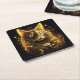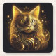 Fantasy Neon Gold Cat Square Paper Coaster