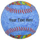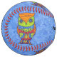 This custom softball is done in shades of blue with fantasy owls in neon colours of orange, green, and red with blue star shaped eyes.  Customise your text with the templates.