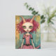 Fantasy Pink Alien Woman Mixed Media Postcard
