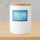 This custom label for a food jar or box has a fantasy aqua blue and white sea dragon with its tail wrapped in green seaweed in a wavy frame with various shades of blues with water bubbles with a dark blue border. Customise your text with the template.