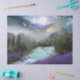 Tissue paper with a beautiful photo of a scenic landscape. A river rushes through an opening in a lush forest. Rock formations and mountains tower in the background. The sky twinkles with stars and ethereal cosmic looking clouds. I really love this magical landscape image, it gives a sense of awe and wonder at the beauty of nature. It is my pleasure to share it with others, and I hope it brings a little bit of joy to you too.